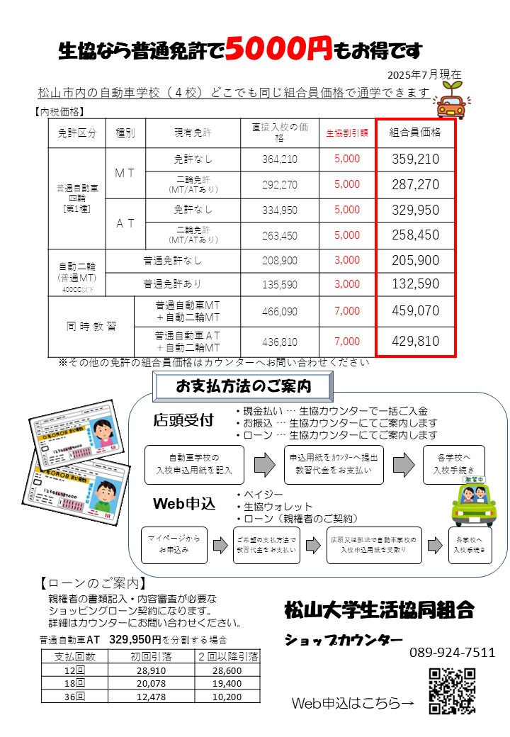 生協で申し込めば免許もお得!